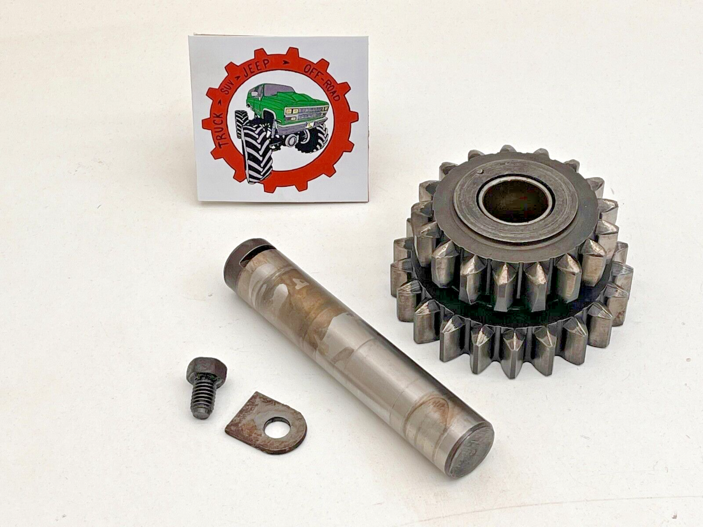 - Original reverse Idler gear set with gear and idler shaft with retainer and bolt.